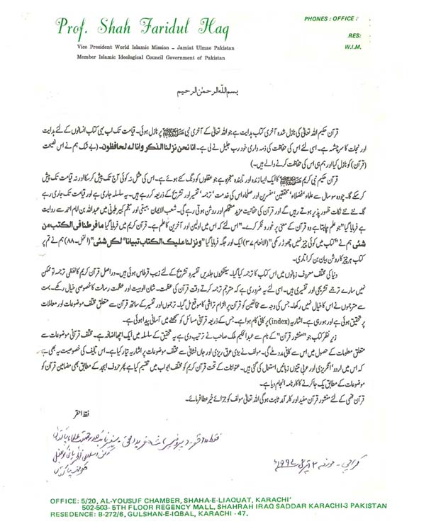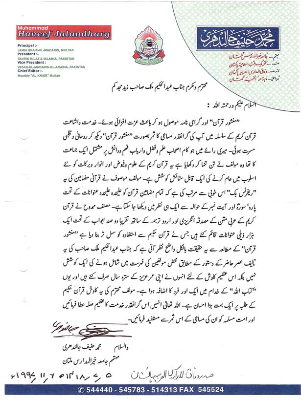 Appreciated by Eminent Religious Scholars (Ulama Karam)